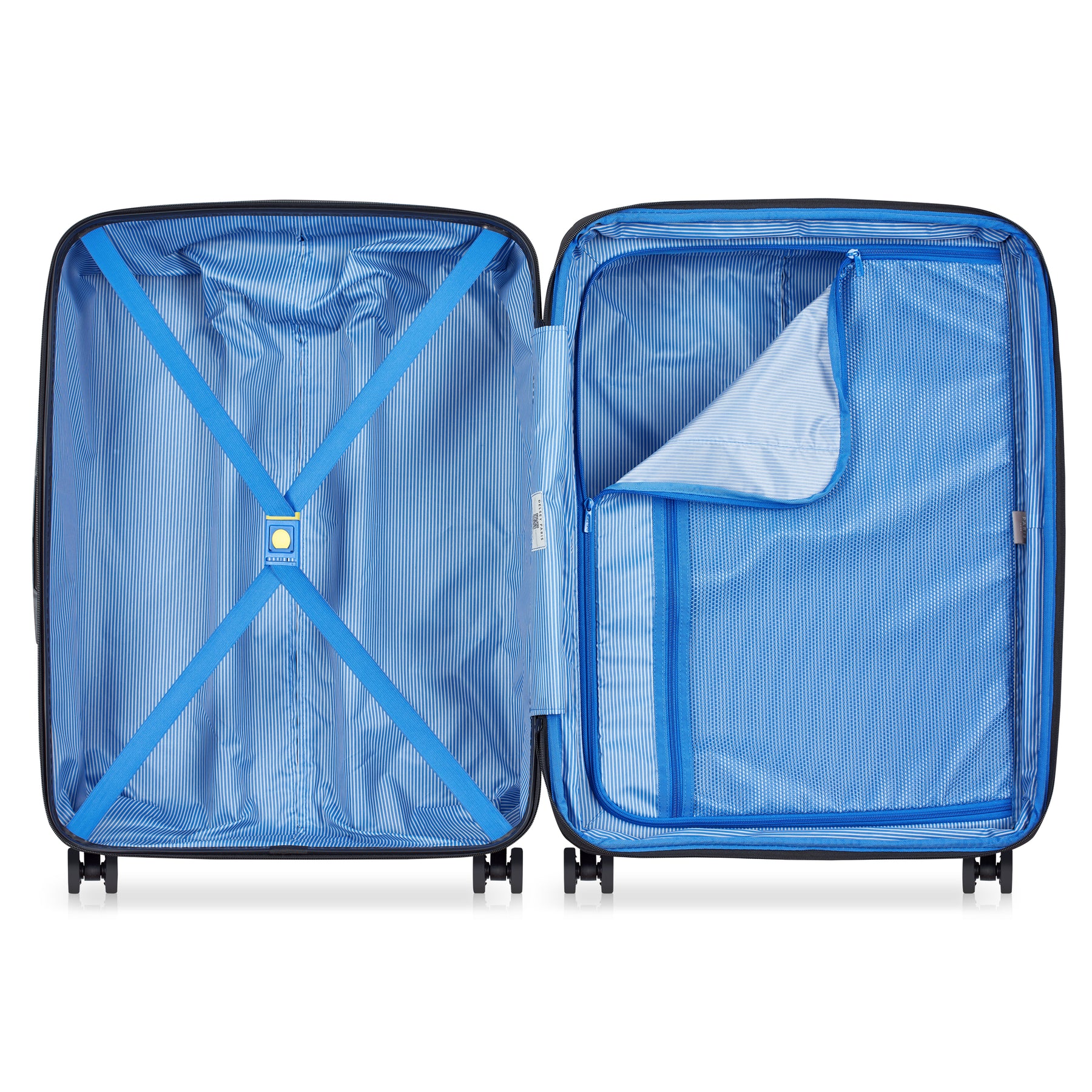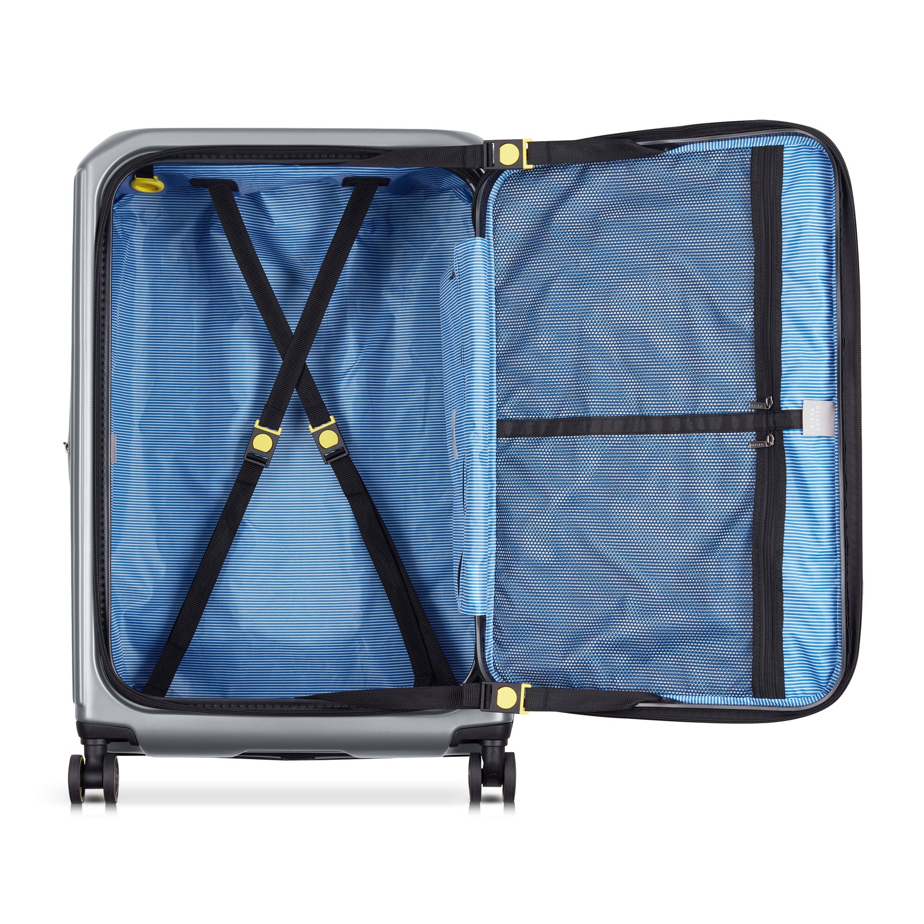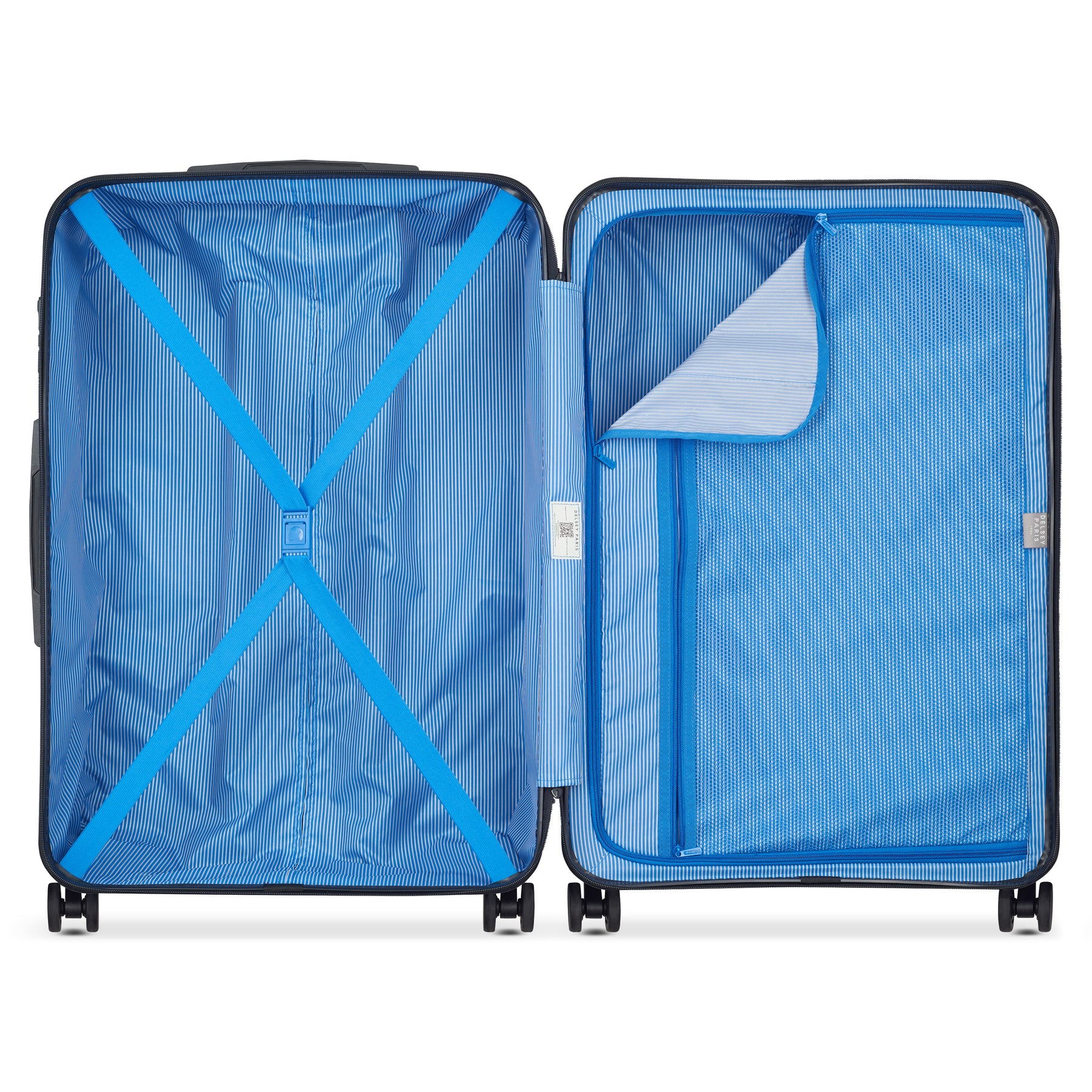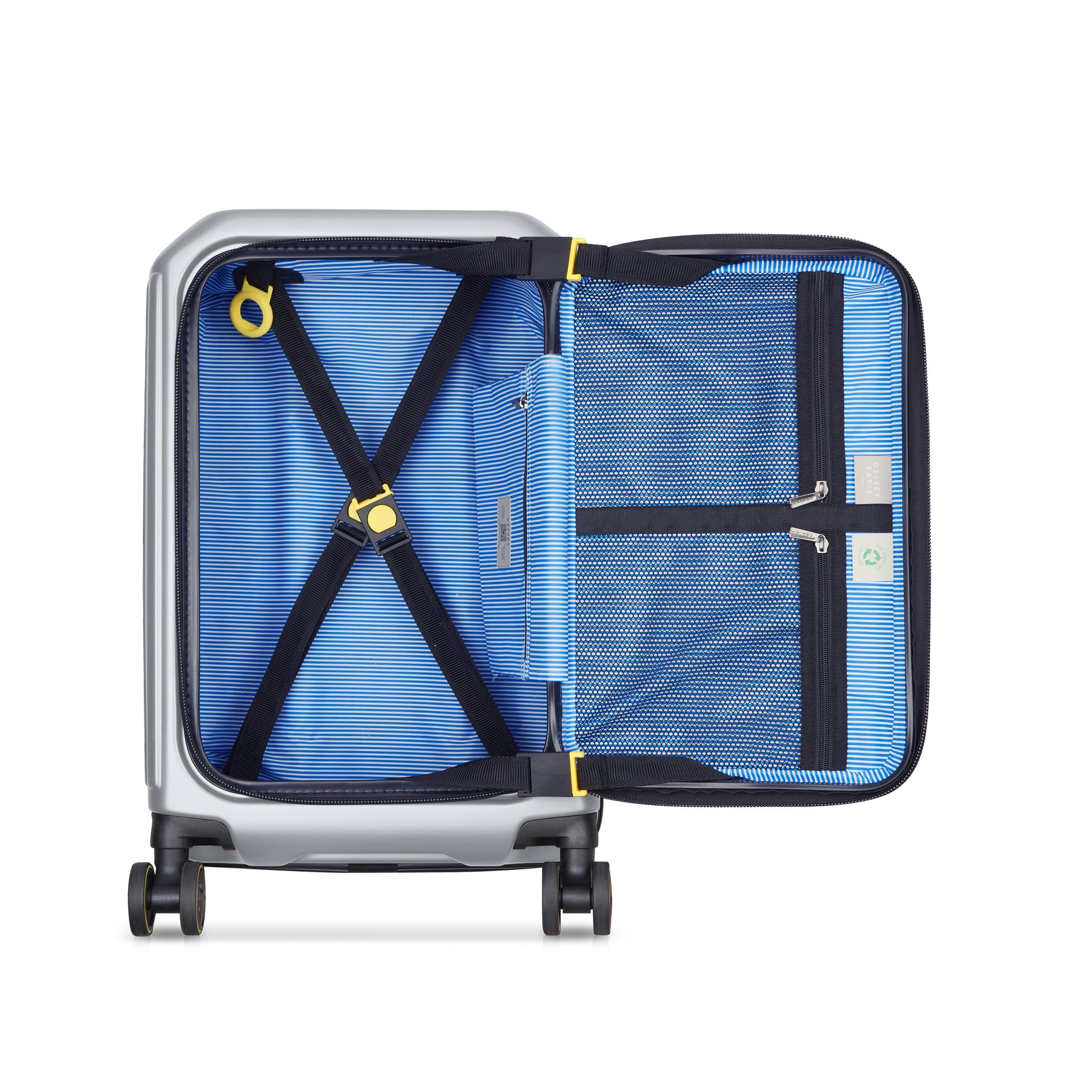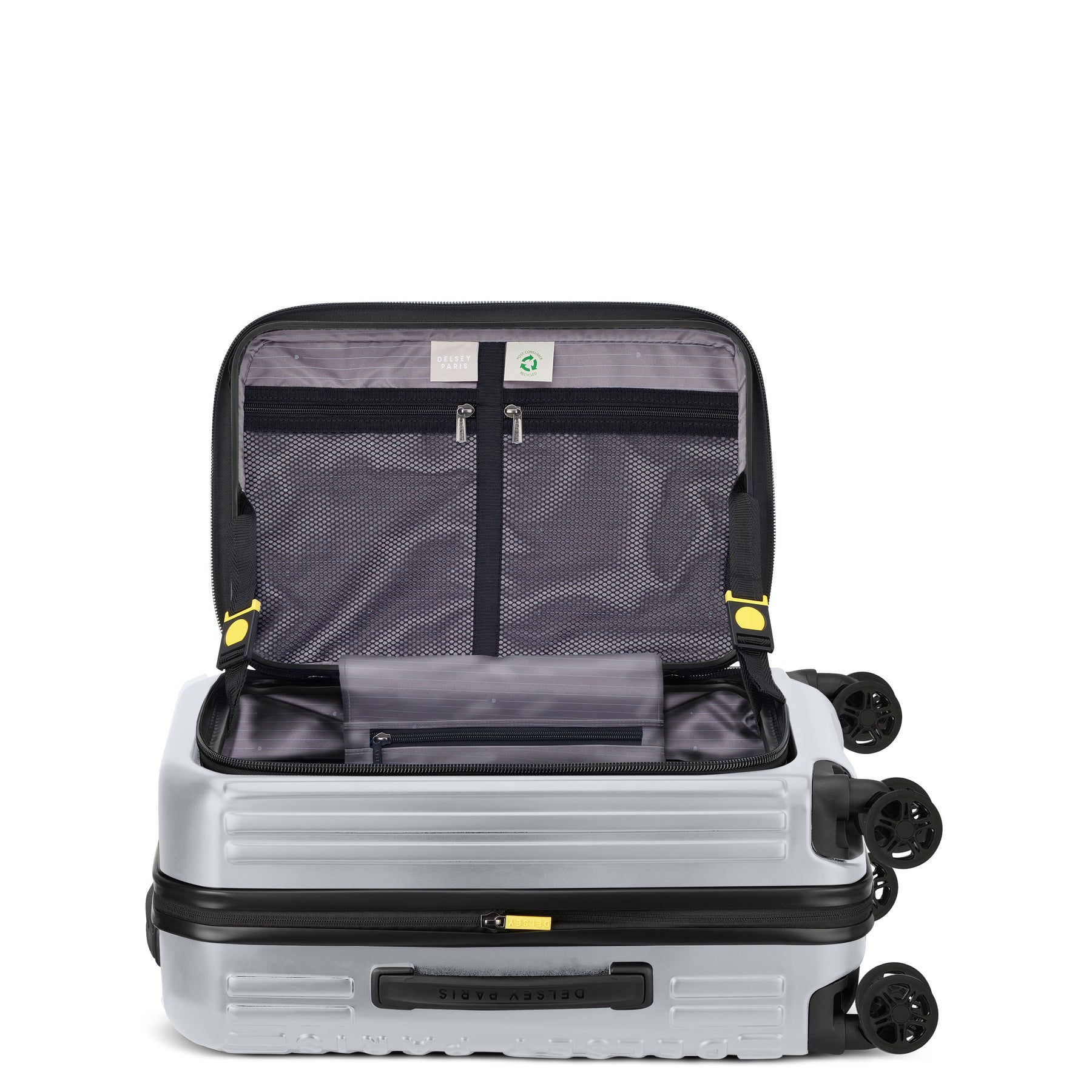 The fabric products and linings of the suitcases are made from 100% recycled plastic bottles.