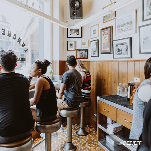 There’s a time and a place for a Frisbee-sized “taco” or an XXL pancake. And its noon on Sunday or any other day of the week at Dove’s. A 70’s diner décor, all in wood and camel-coloured leather, so charming! You can be sure to find any tequila or mescal you’re looking for right here. There’s no point looking elsewhere. An updated ceviche menu and Mexican-style dishes, records playing in the background matching the rhythm of the cocktail shaker, just what we needed.