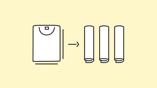 Role items to avoid creasing. We call this the maki technique. You can layer up several tops prior to rolling for even fewer creases.